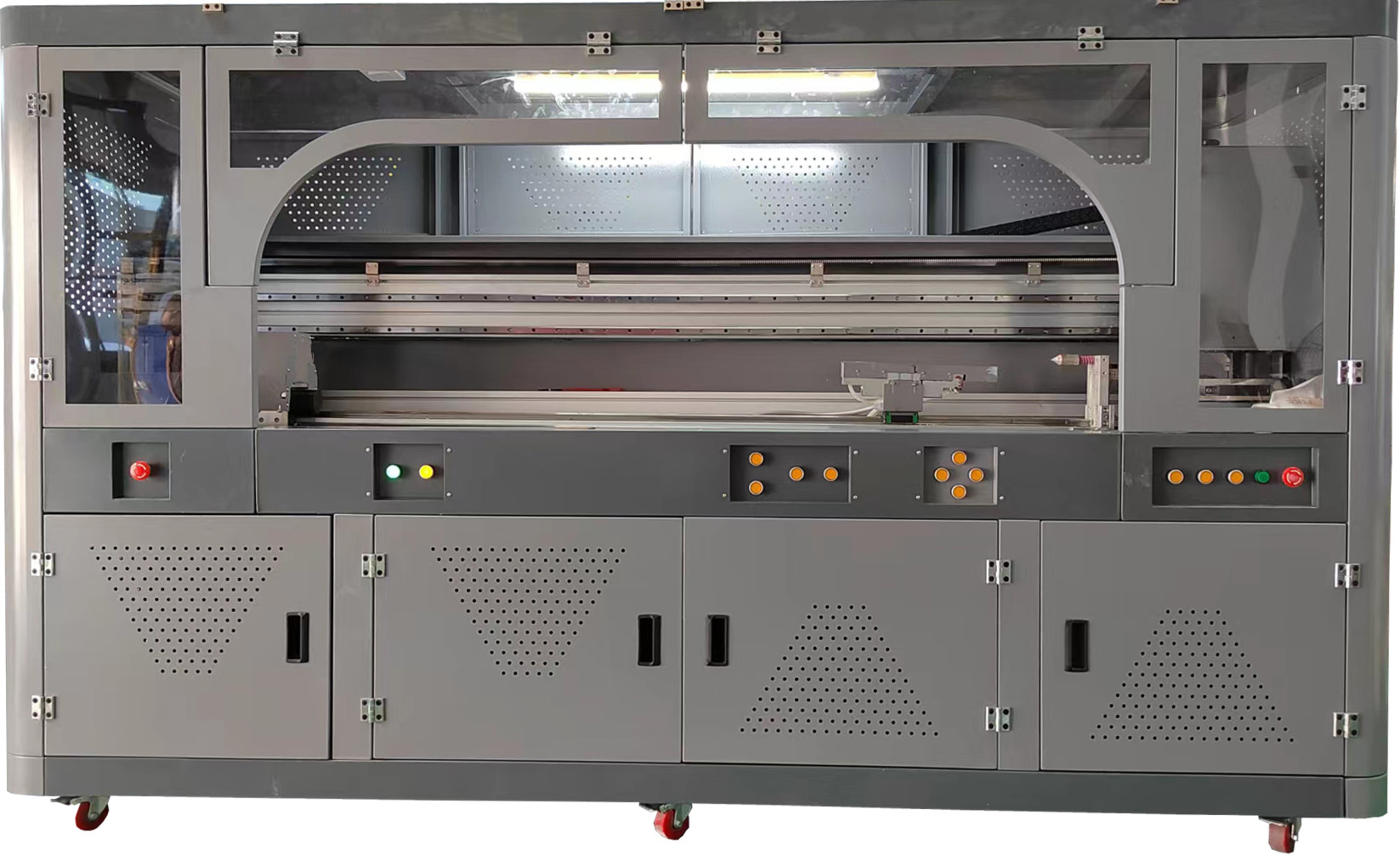 يمكن تطبيق الطابعة الأسطوانية على منتجات المواد الخام المسطحة: لوح البورسلين، الزجاج، الأكريليك، PVC، ABS، اللوح العضوي، المعدن، الخشب، البلاستيك، الحجر، الجلد، مواد البناء، مواد الديكور، هلام السيليكا، لوحة شبكية للرسم ثلاثي الأبعاد، ورقة شبكية وغيرها من القماش، قماش الزيت، قماش صندوق الإضاءة وغيرها من المواد الخام غير المحدودة، طباعة ألوان الصور؛ المنتجات التي يمكن تطبيقها على المواد المنحنية: الأكواب الحرارية، مكبرات الصوت الدائرية، زجاجات النبيذ المستديرة، الهدايا الحرفية المستديرة، إلخ. اتجاه الطباعة دقيق، مما يتجنب مشكلة إزاحة الاتجاه التي تواجهها في الطباعة اليدوية.