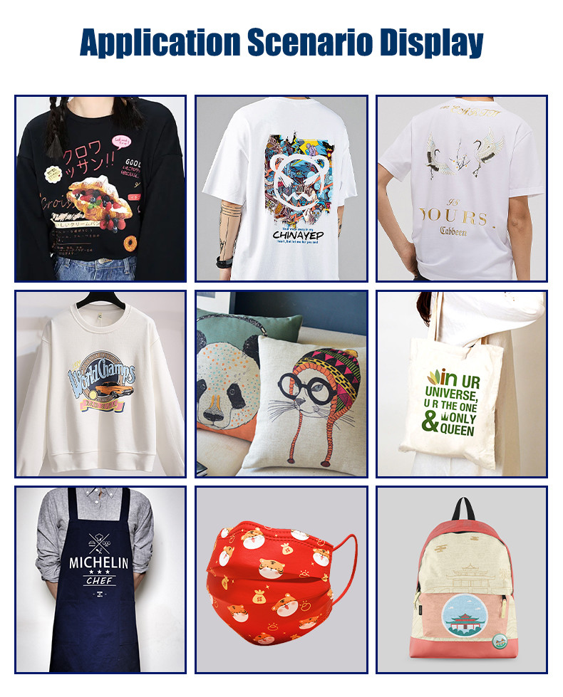 الطباعة بالحبر الأبيض والطابع الساخن مناسبة للتخصيص الشخصيوتأثير النقل هو أكثر قابلية للغسل ومقاومة للدموع.لديه خصائص الشعور البصري الثلاثي الأبعاد القوي ، والشعور الجيد باليد ، والألوان المتنوعة ، وحماية البيئة للمواد ، والتأثير الثري الأبعاد وهلم جرا.المنتج مستقر، واجهة بسيطة، والعملية مريحة وسرعة الطباعة سريعة.